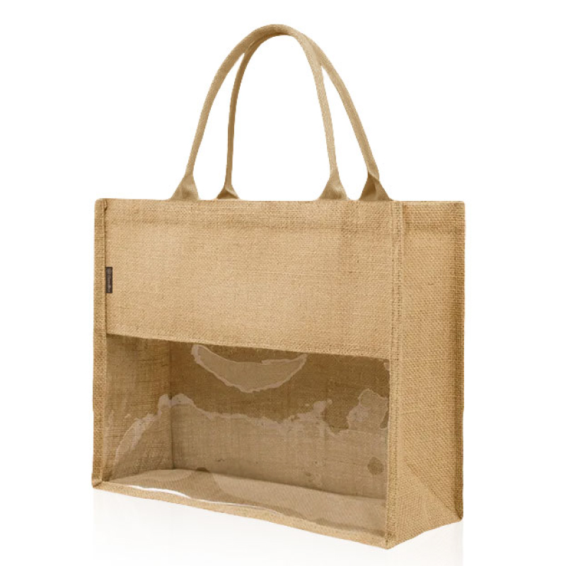 תיק מעוצב עשוי בד יוטה בשילוב PVC שקוף