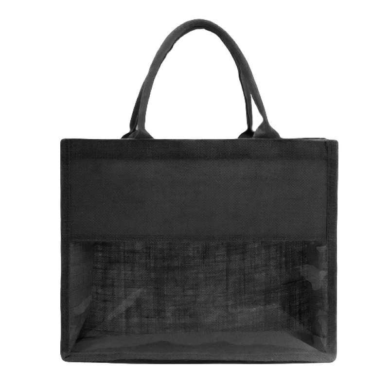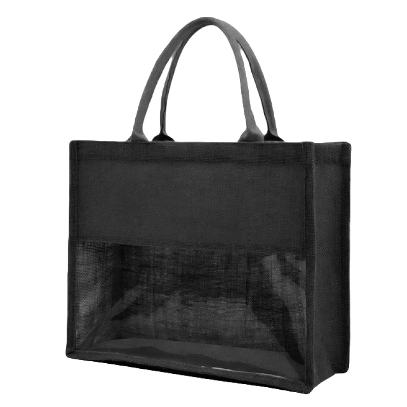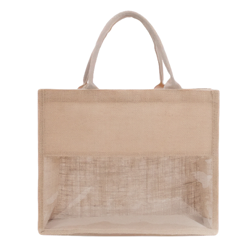 תיק מעוצב עשוי בד יוטה בשילוב PVC שקוף