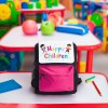 תיק גב מעוצב לילד עשוי בד קורדורה מתאים להדפסת סובלימציה תא מרכזי גדול, תא קדמי שתי תאי רשת גב ורצועות מרופדים 25X8.5X34 ס"מ