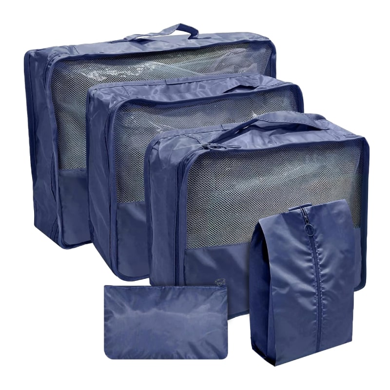 סט 5 ארגוניות למזוודה, לסידור נוח וחיסכון במקום עשוי בד בשילוב רשת לאיוורור כולל תא לנעליים