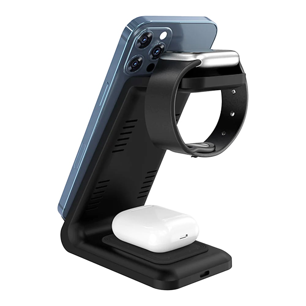 מאפשרת טעינת 3 מכשירים במקביל ,טלפון, אוזניות ושעון חכם
